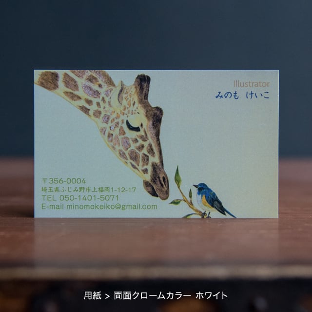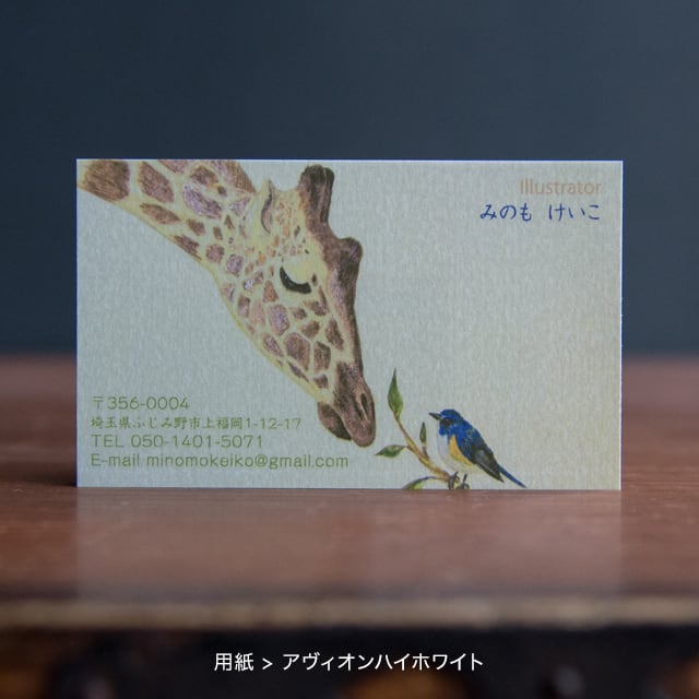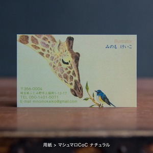 名刺 テンプレート 印刷|MTG-001 きりんとルリビタキ|用紙は落ち着いた雰囲気のブンペルダンボが特におすすめ