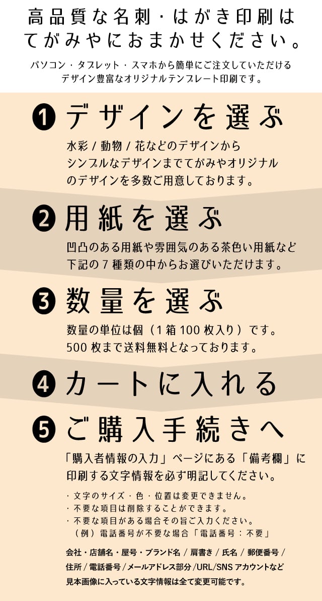 てがみやオンラインショップは、ネットで名刺のデザインを選んで作成できる、名刺やはがきテンプレート印刷の通販ショップです。