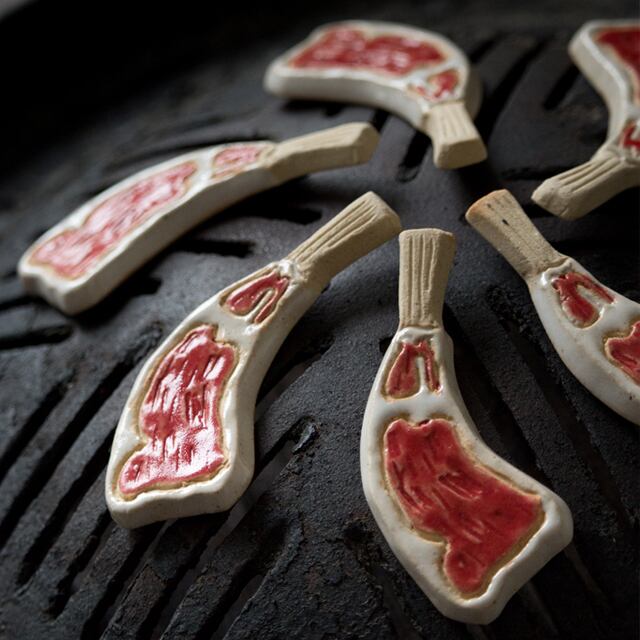 ブローチ・陶芸|TCB-001 ラムチョップブローチ|ラムチョップをモチーフにした陶器のブローチ てがみやオリジナルデザイン